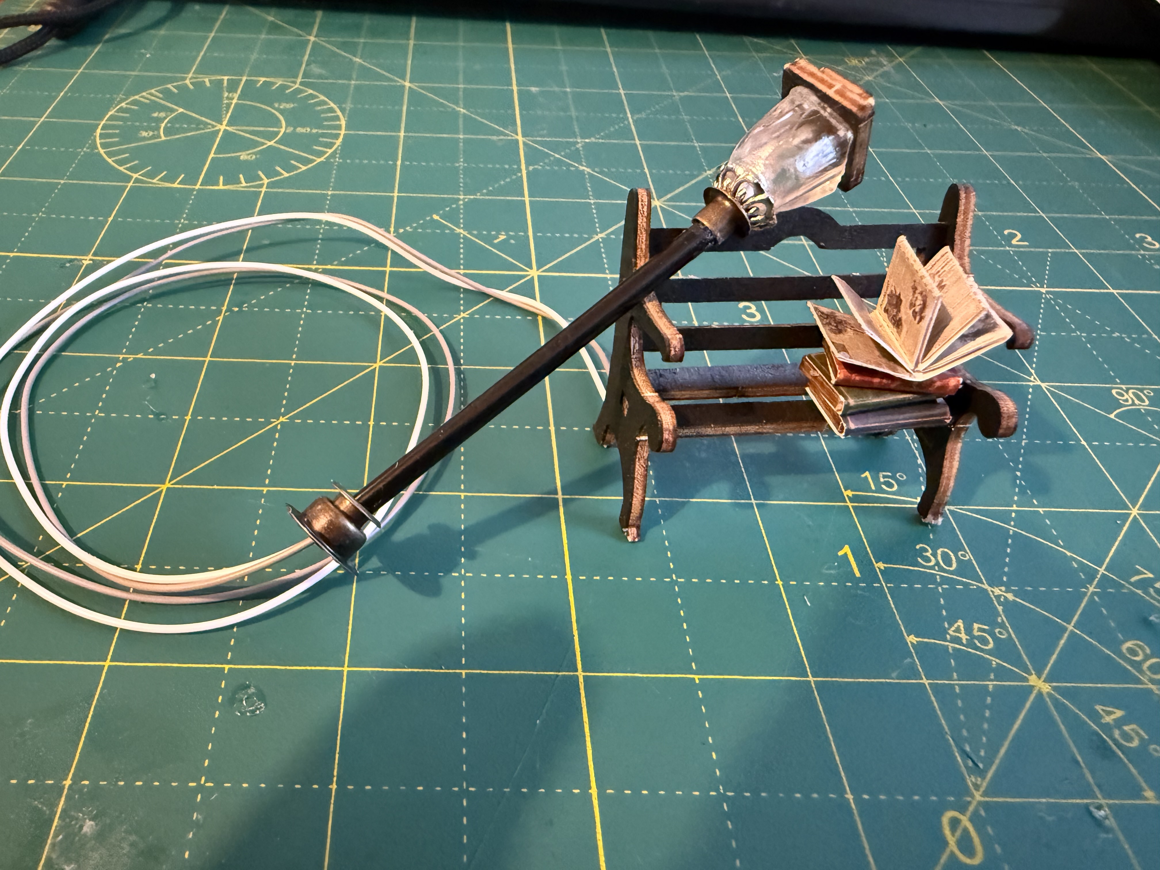 - Test the lighting before you do anything else to make sure all the lights work. Lighting is one of the biggest fears for a new starter so get to know it. As most book nook models are made in China with long transportation times, sometimes lighting fails….you do not want to find that out when you come to switch it on after you have finished building.
