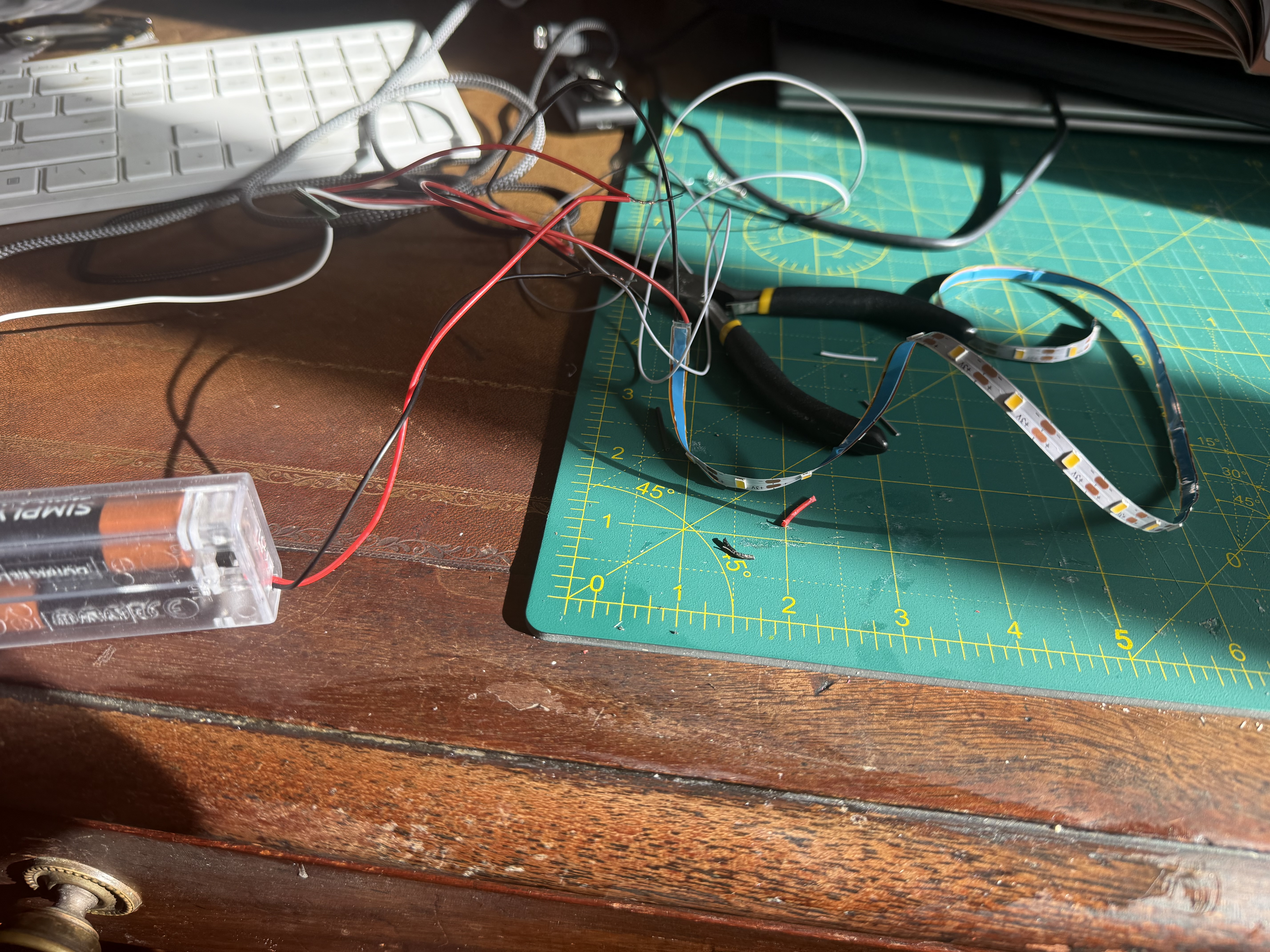 - If you’re feeling slightly tired and the next step is lighting….stop! Generally in the early stages of lighting you are positioning individual lamps which only join together at the very end. Check the light that you are doing and see where the lead ends to make sure you don’t enclose it