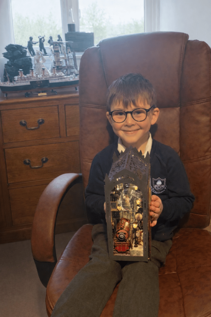 The build itself was enjoyable – a detailed little station scene with a red locomotive arriving under warm lantern light. As with most book nook kits, the magic really happens when the lighting is switched on for the first time.