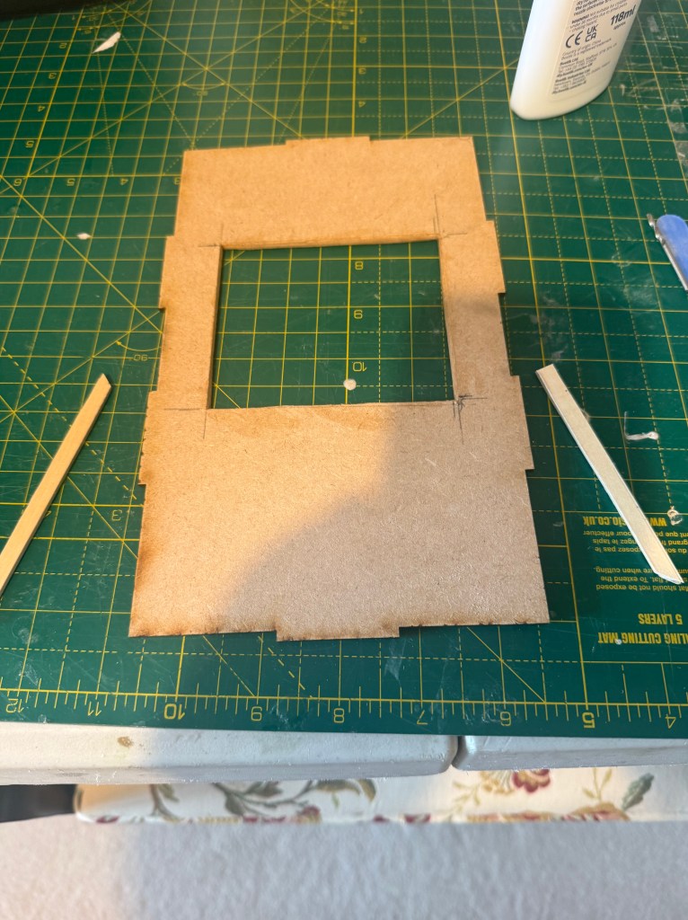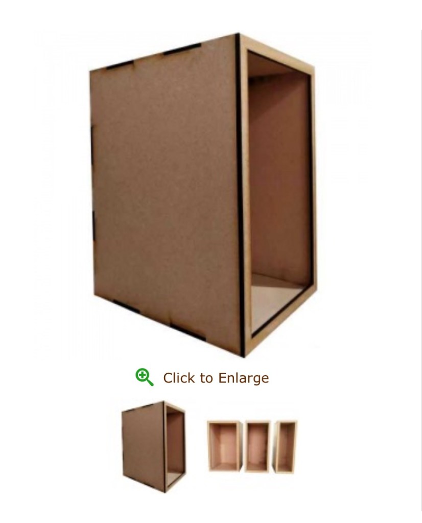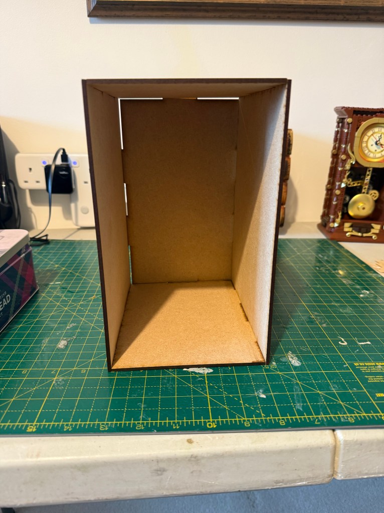 At this first custom build model I still decided to use a book nook shell that I got from Calico Craft for the XL kit the dimensions are 140mm wide x 180mm tall x 230mm deep. This comes flat packed but is high quality MDF with all the edges primed; this is generally a weak point.